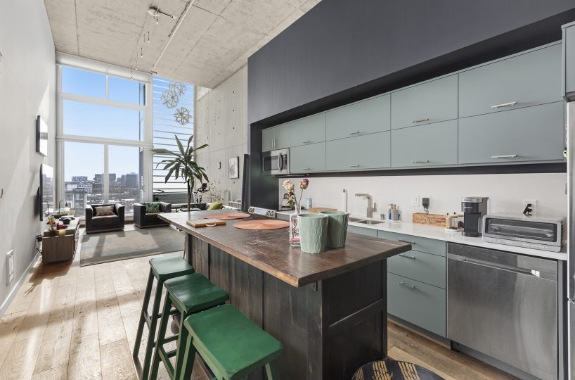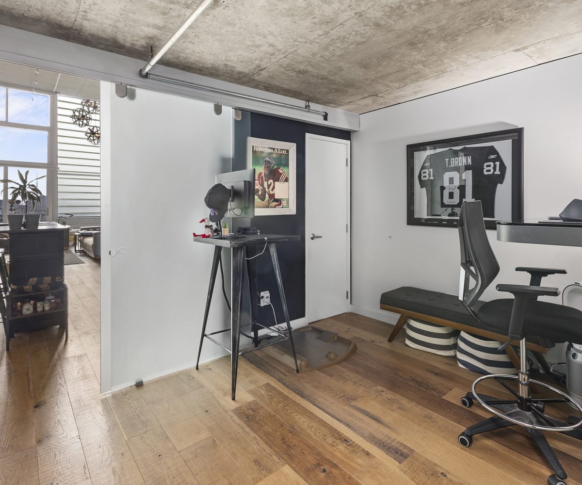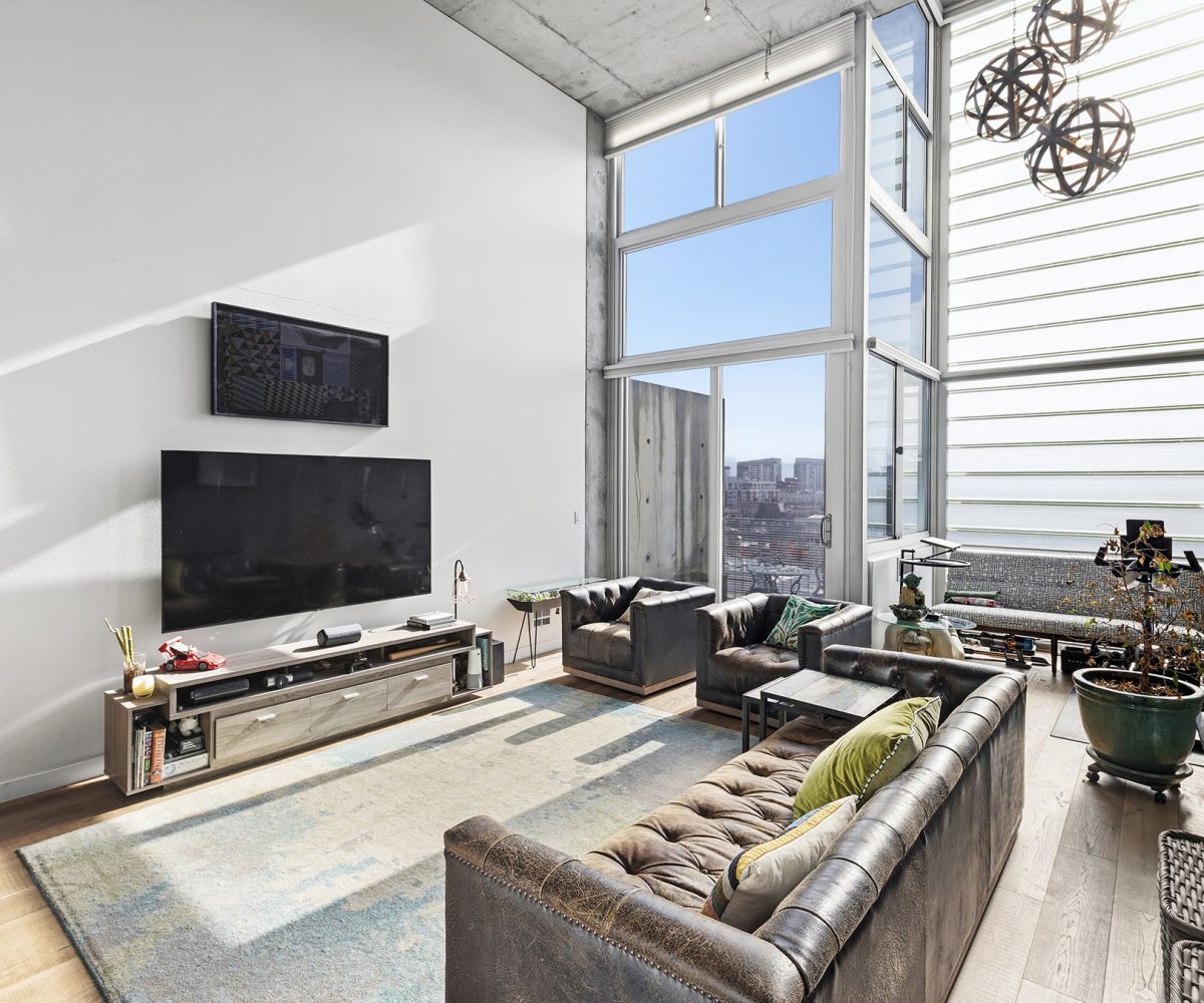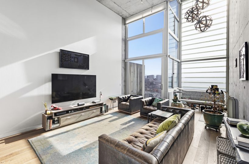 Stunning Yerba Buena Loft PENTHOUSE! Awarded 2/2 with soaring ceilings, a flexible layout, a skylight, a balcony, and a great location with amazing VIEWS! New hardwood floors, updated kitchen cabinets and countertops, updated toilets (Japanese-style Toto Washlet), and updated bathroom fixtures, lighting, fans, and mirrors!