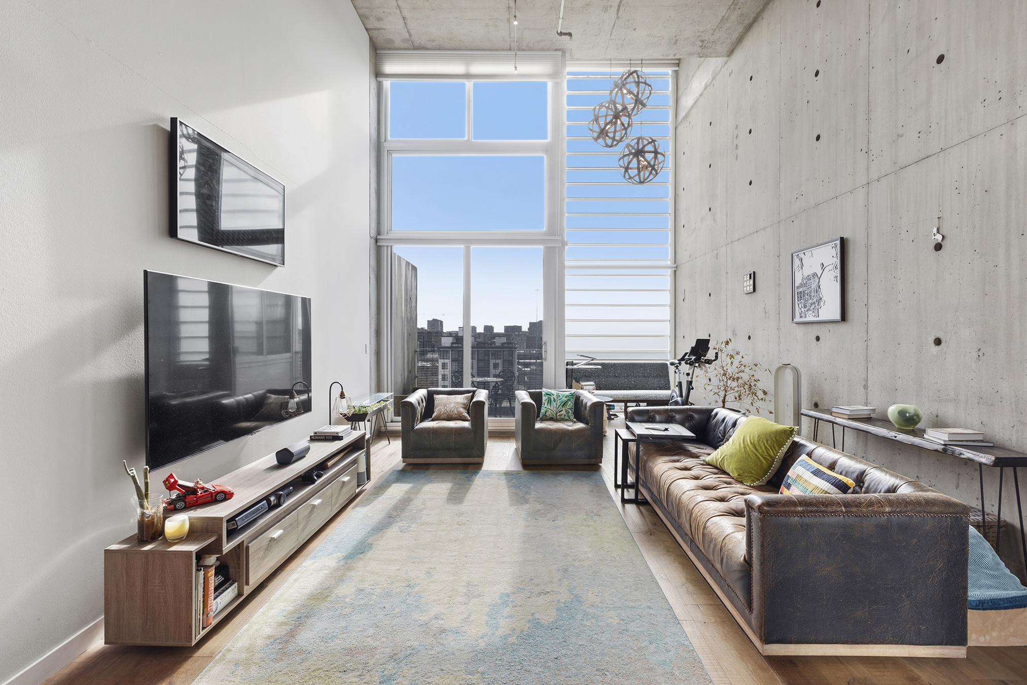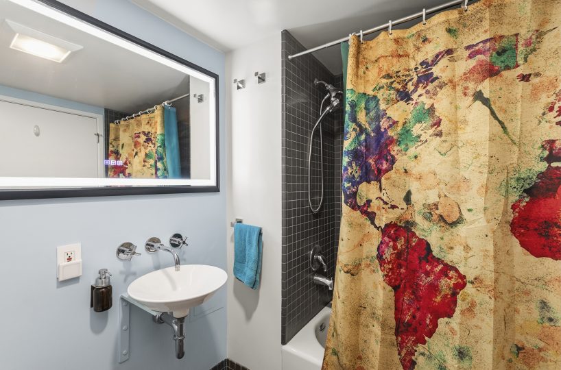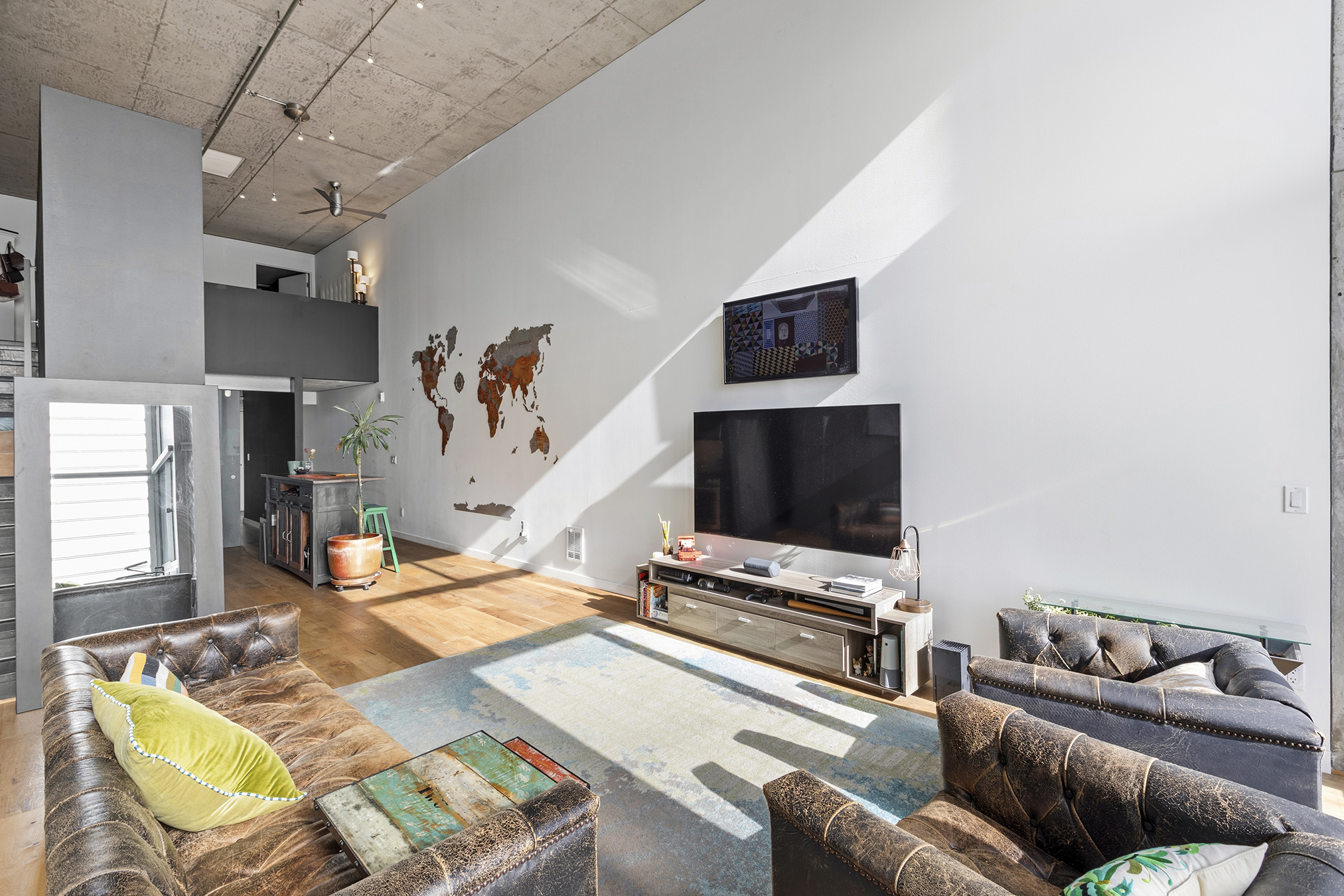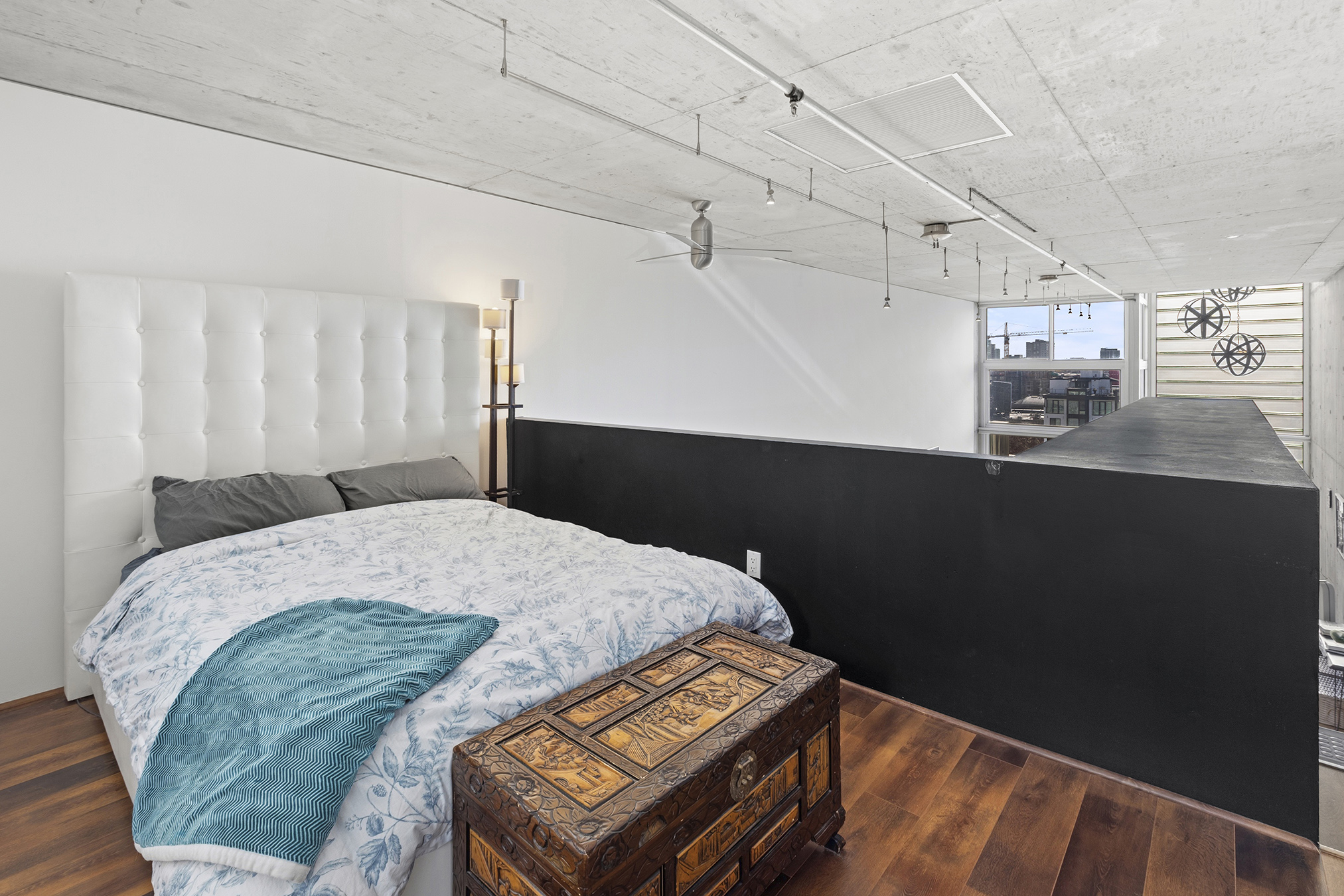Stunning Yerba Buena Loft PENTHOUSE! Awarded 2/2 with soaring ceilings, a flexible layout, a skylight, a balcony, and a great location with amazing VIEWS! New hardwood floors, updated kitchen cabinets and countertops, updated toilets (Japanese-style Toto Washlet), and updated bathroom fixtures, lighting, fans, and mirrors!